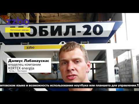 За один цикл производится 0,33 куба бетона. Цикл длится менее минуты. Таким образом 1 куб бетона производится за три минуты работы установки МОБИЛ-20.